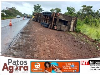 Carreta carregada com gado tomba na BR-365 próximo ao trevo de Coromandel