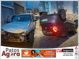 Duas pessoas ficam feridas após acidente seguido de capotamento em Patos de Minas