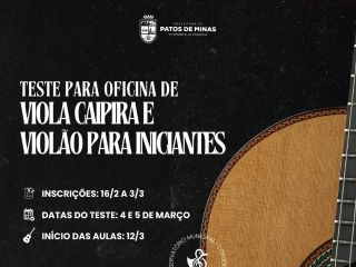 Inscrições para oficina de viola caipira e violão abrem em breve
