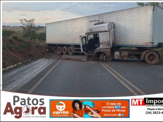 Pista molhada provoca colisão entre dois caminhões na BR-352