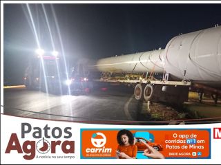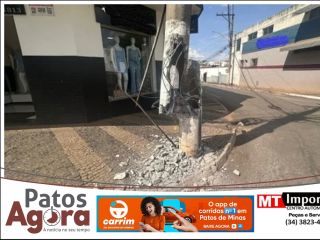 Carreta derruba poste de iluminação no Centro de Patos de Minas e motorista foge