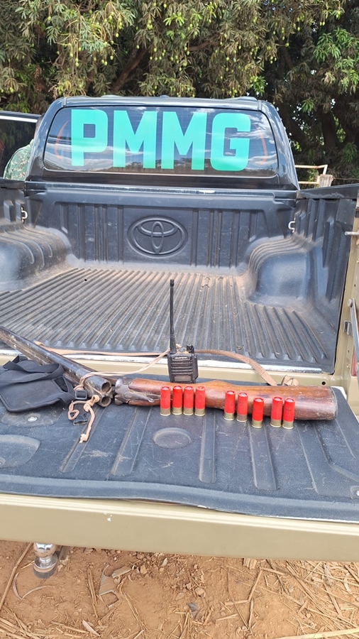 Na ação, a equipe apreendeu uma espingarda, tipo cartucheira, calibre 12, nove cartuchos carregados e um rádio comunicador portátil VHF em funcionamento.