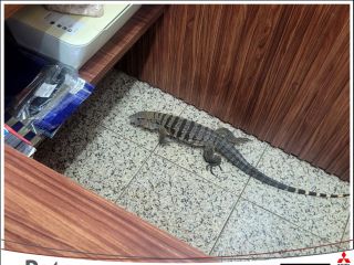 Corpo de Bombeiros resgata lagarto Teiú dentro de loja no Centro de Patos de Minas