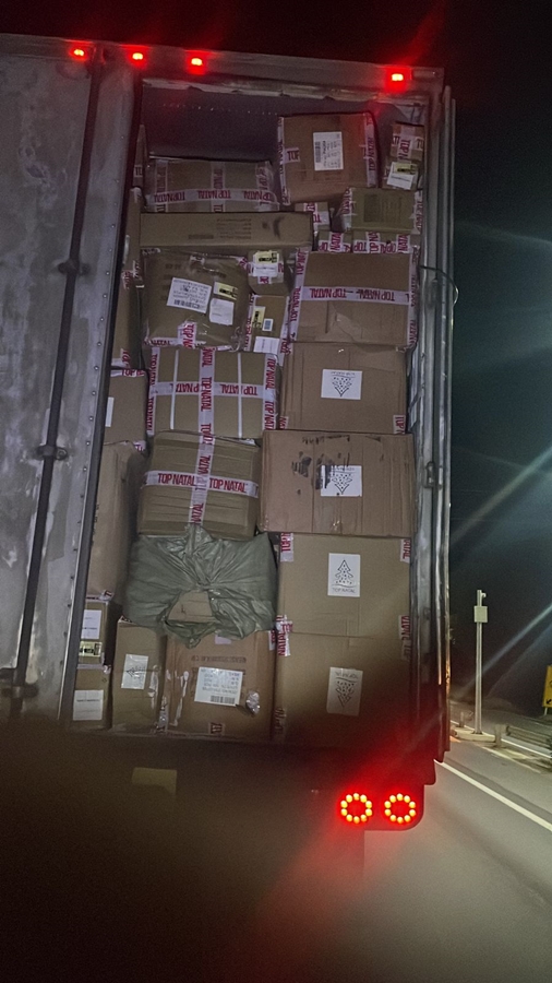 Durante a fiscalização, os militares constataram que o caminhão transportava uma grande quantidade de produtos estrangeiros, como brinquedos e outros itens da China.