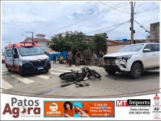 Condutor de Hilux avança parada obrigatória e atinge motocicleta em Patos de Minas