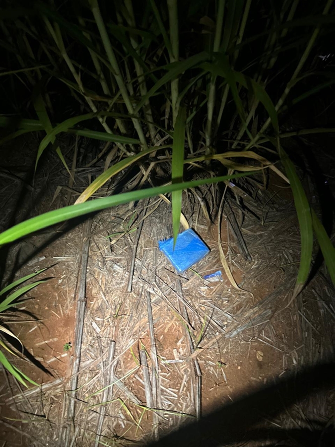 Ao receberem a ordem de parada, os ocupantes do veículo — jovens de 18, 19 e 22 anos — foram submetidos à fiscalização. No momento do desembarque, o passageiro de 22 anos tentou se desfazer de um objeto, arremessando-o em uma área de vegetação densa às margens da rodovia. Com o apoio de uma segunda equipe policial, os militares realizaram uma varredura minuciosa no local e localizaram uma barra de pasta base de cocaína escondida no capim alto.
